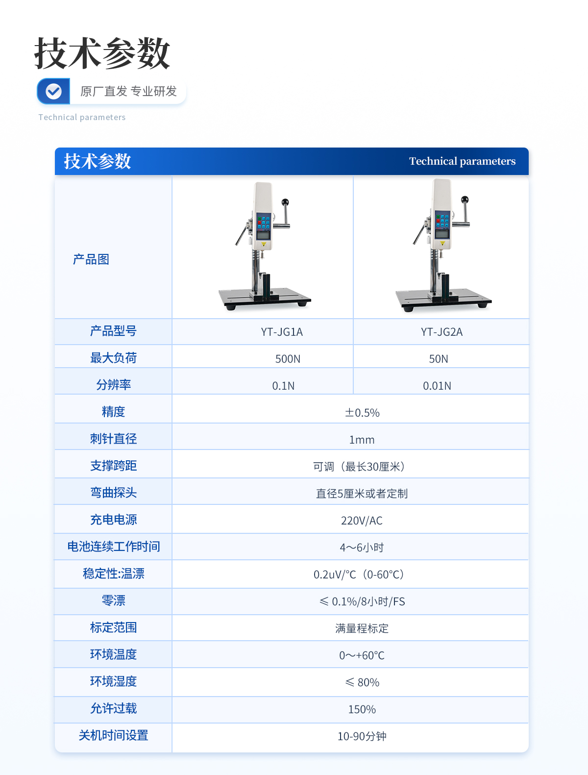 | **負(fù)荷:500N (其他量程可定制,N、Kg和ib三種單位可自動(dòng)轉(zhuǎn)換) | 分辨率:0.1N | 精度:±0.5%; | 刺針直徑:1mm | 支撐跨距:可調(diào)(*長(zhǎng)30厘米) | 彎曲探頭:直徑5厘米或者定制 | 充電電源:220V/AC; | 電池連續(xù)工作時(shí)間:4~6小時(shí); | 穩(wěn)定性:溫漂:0.2uV/℃(0-60℃); | 零漂:≤ 0.1%/8小時(shí)/FS; | 標(biāo)定范圍:滿量程標(biāo)定; | 環(huán)境溫度:0~+60℃; | 環(huán)境濕度:≤ 80%; | 允許過(guò)載:150%; | 關(guān)機(jī)時(shí)間設(shè)置:10-90分鐘。 |