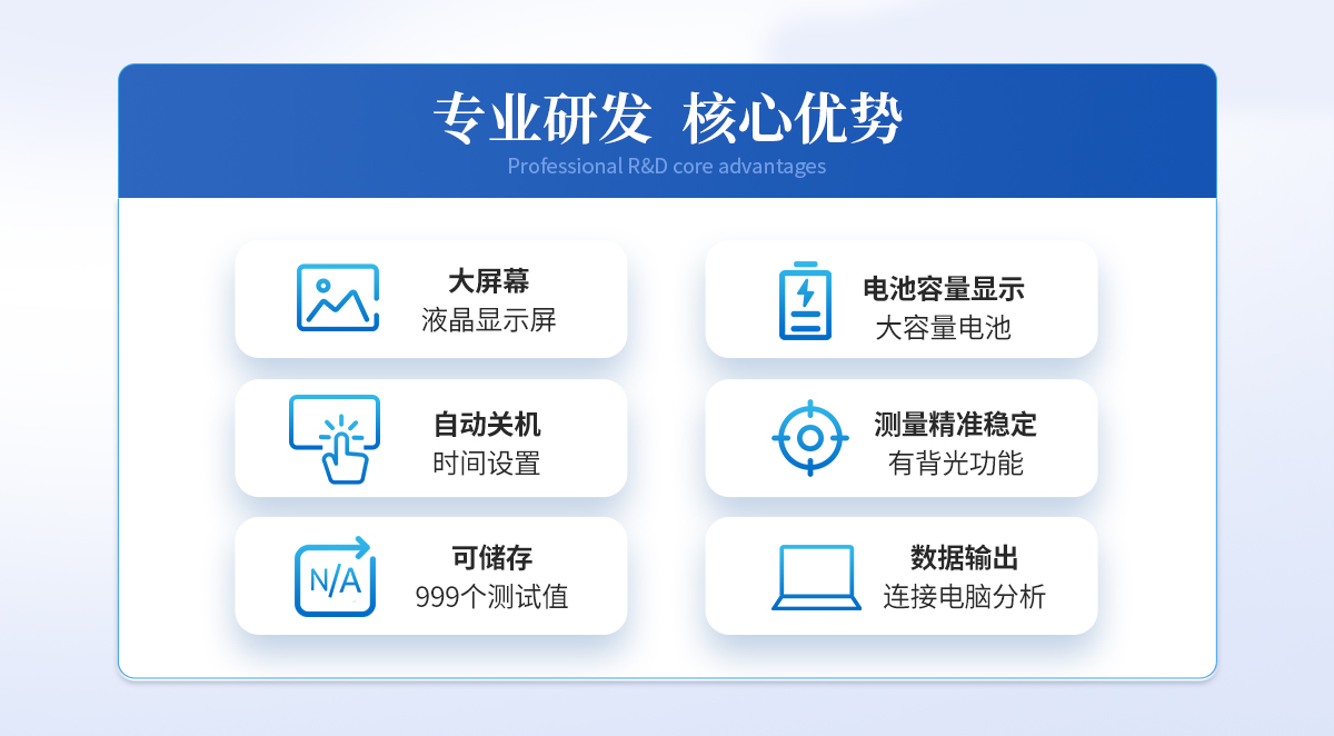 | 1、三種不同測(cè)頭:可進(jìn)行莖桿彎折性能測(cè)量、莖稈抗壓強(qiáng)度測(cè)量、莖桿組織結(jié)構(gòu)(穿刺)強(qiáng)度測(cè)量;彎折支架距離可調(diào),并標(biāo)有刻度。 | 2、可配測(cè)位移標(biāo)尺 | 3、可連接電腦測(cè)試,可保存、打印,做各種分析,輸入速度、面積還可顯示位移、壓強(qiáng)等參數(shù); | 4、可儲(chǔ)存999個(gè)測(cè)試值; | 5、大屏幕液晶顯示,有背光功能,并具有屏幕數(shù)字正、倒反轉(zhuǎn)功能; | 6、自動(dòng)關(guān)機(jī)時(shí)間設(shè)置; | 7、電池容量顯示,電量過(guò)低自動(dòng)關(guān)機(jī)。 |