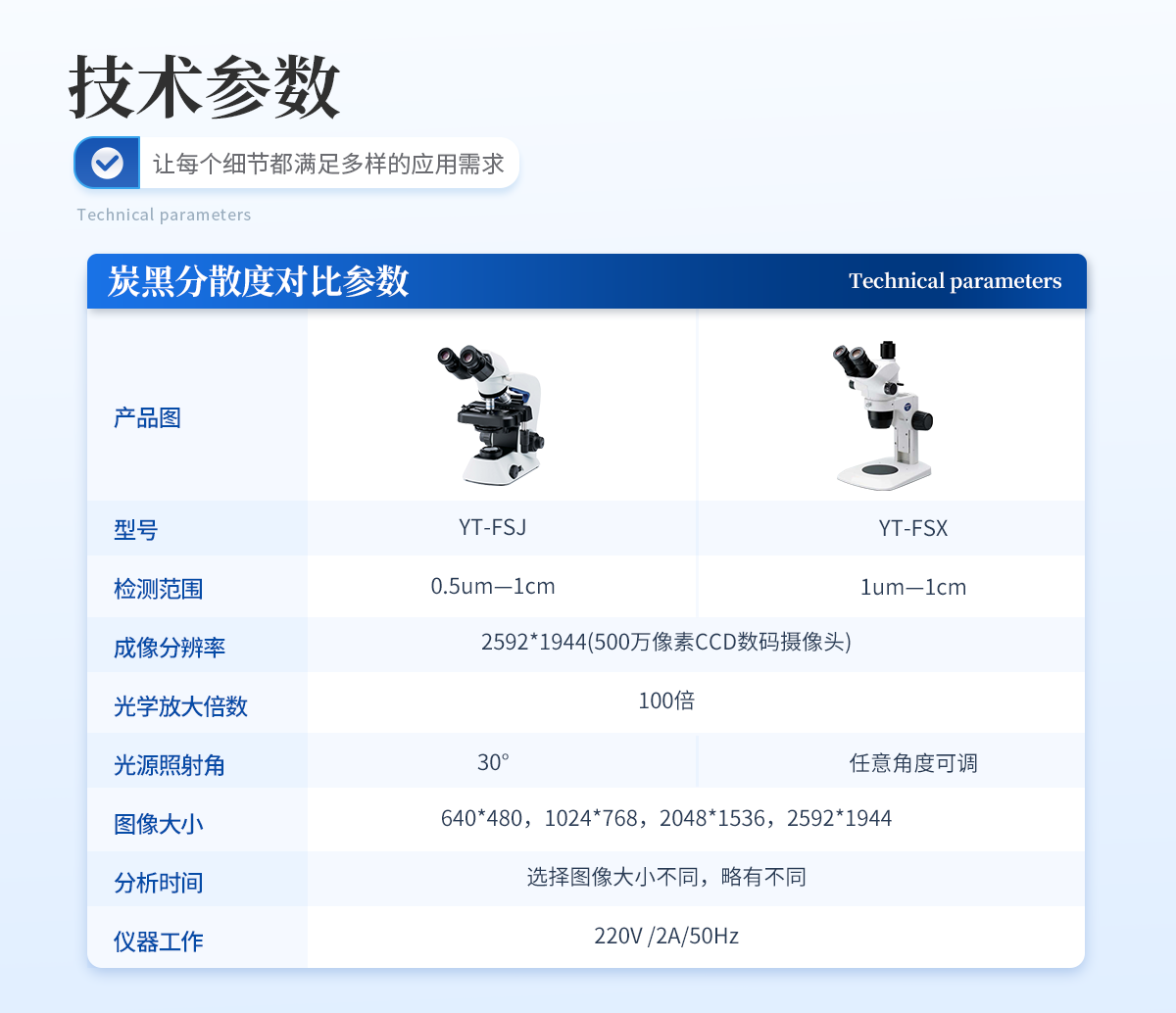 | 1. 檢測范圍:1um—1cm | 2. 成像分辨率:2592*1944(500萬像素CCD數碼攝像頭) | 3. 光學放大倍數:100倍 | 4. 光源照射角:任意角度可調 | 5. 圖像大?。?40*480,1024*768,2048*1536,2592*1944 | 6. 分析時間:選擇圖像大小不同,略有不同 | 7. 儀器工作電源:220V /2A/50Hz |