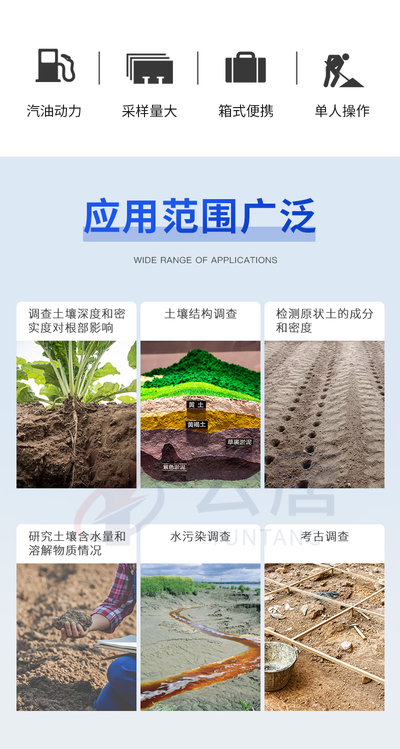 動力(汽油)土壤采樣器(汽油動力土鉆)土壤采樣器是本廠汲取廣大客戶意見、經多方用戶需求和市場調研,開發出的一款動力(汽油)土壤采樣器。儀器采用汽油機驅動、以大幅減免土壤取樣人員的勞動力和快速、取樣簡便而著稱。