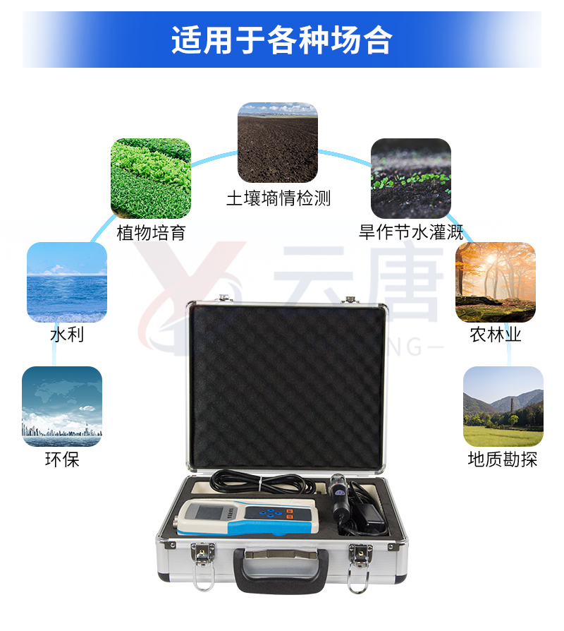 土壤水分測定儀采用FDR頻域反射原理,快速準確測量土壤中含水量,可對多處樣地、不同土壤深度的水分含量進行快速檢測和長期連續(xù)監(jiān)測。廣泛應用于土壤墑情檢測、旱作節(jié)水灌溉、精細農業(yè)、林業(yè)、地質勘探、植物培育等領域。