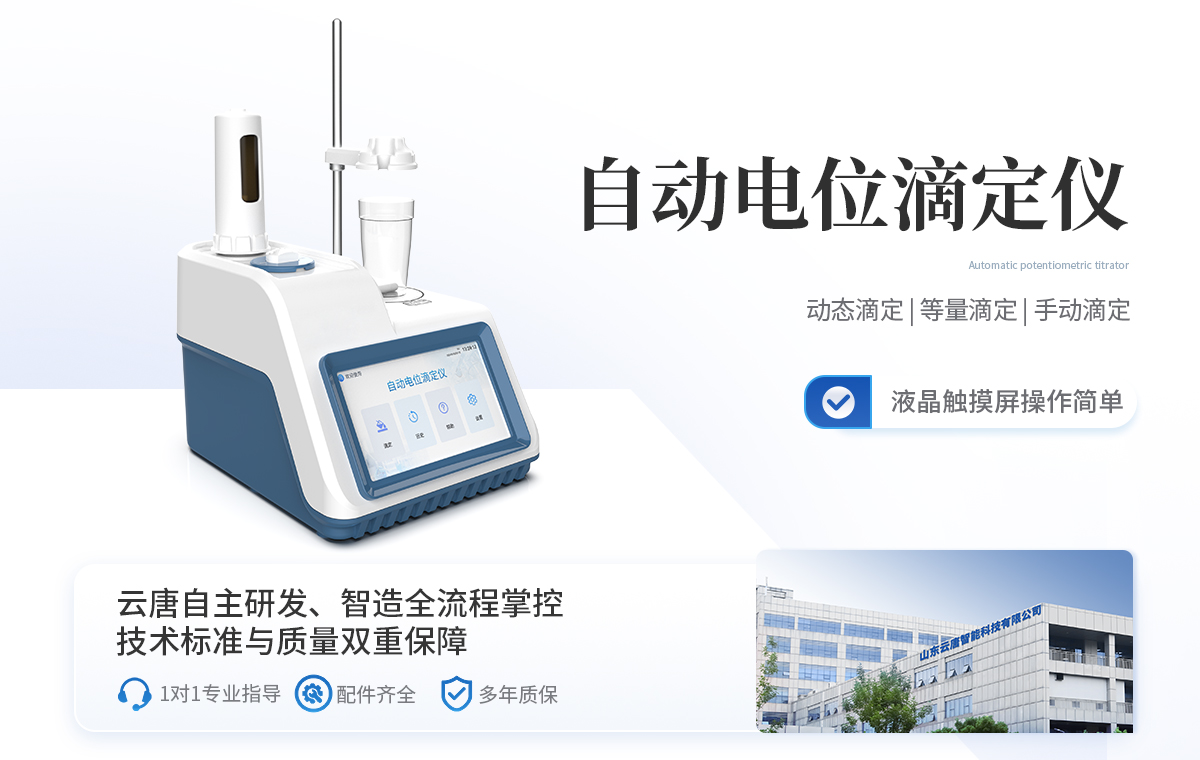 | 自動電位滴定儀是一種用于化學分析的精密儀器,他通過自動添加滴定劑來確定樣品中特定成分的濃度。該儀器基于電位滴定原理工作,即根據在滴定過程中電池電動勢的變化來確定滴定終點的一款滴定設備。設備滿足國家檢定規程JJG 814-2015《自動電位滴定儀》儀器級別中的0.05級別,即儀器**示值誤差為±1.5%,儀器示值重復性≤0.2% |